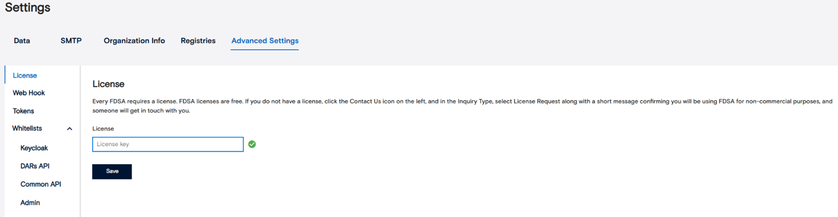 If your license expires or needs to be updated, you can upload a new license file here. This ensures uninterrupted access to all FDSA features and services.