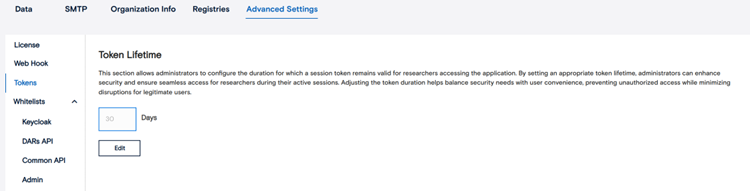 Here you can define how long session tokens remain valid before users are automatically logged out. Adjusting token duration helps balance convenience with security, depending on your organization’s policy.