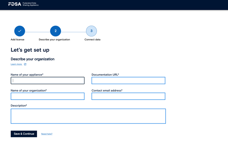 4.2 Organization info – what researchers see as the “owner” of this FDSA instance.