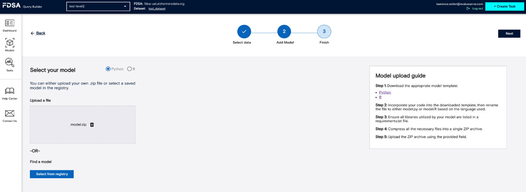 - After the upload is complete, the model will appear in the list and can be selected when you create a task.