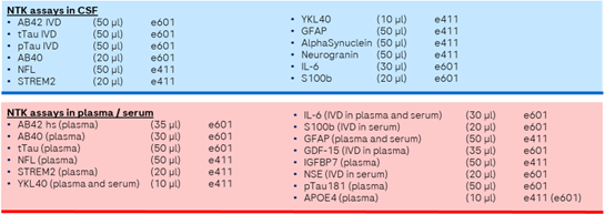 The NTK offers an intended-use agnostic portfolio of 14 CSF and 16 serum/plasma assays, with more in development.