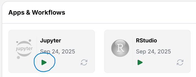 To run any of these, navigate to the App tab and click on the Play button of the App you want to start. When you start an App, it will open in a new tab and you will be able to use it from there.