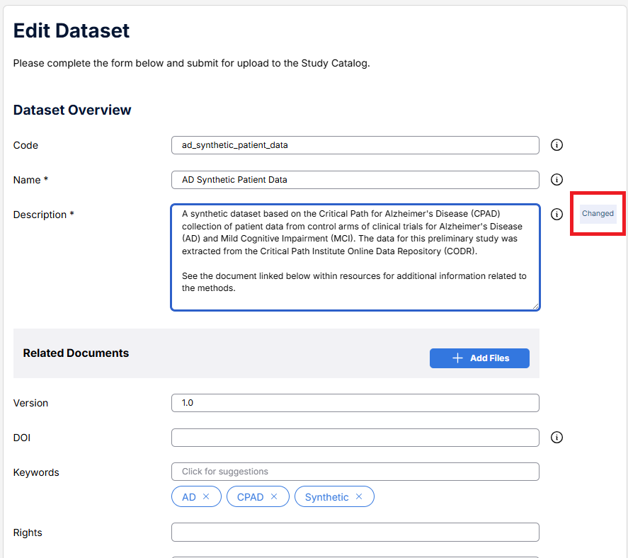 Update fields as required. Those updated will be tagged with a Changed icon.