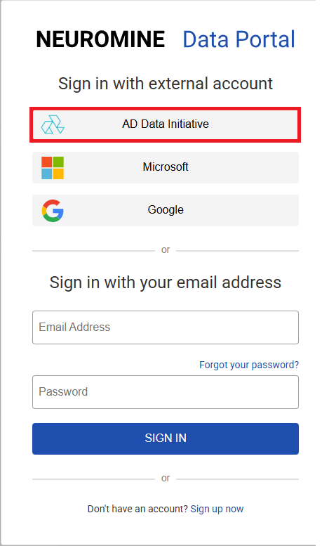 Log in to Neuromine using AD Data Initiative credentials.
